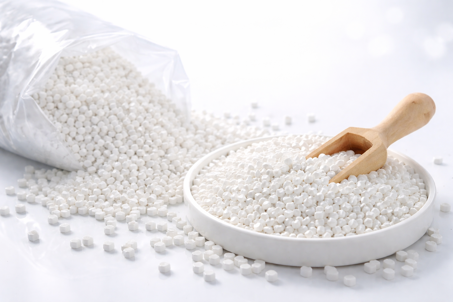 Masterbatches blancos con excelentes propiedades ópticas y alta resistencia a la opacidad, tono y color, además de una buena capacidad de dispersión.
